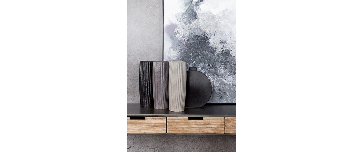 Αναδείξτε την υλική ένταση και το σύγχρονο design με το ανάγλυφο κεραμικό βάζο «Rige», ένα ιδιαίτερο διακοσμητικό που ξεχωρίζει για την υφή και τη λιτή του φόρμα.