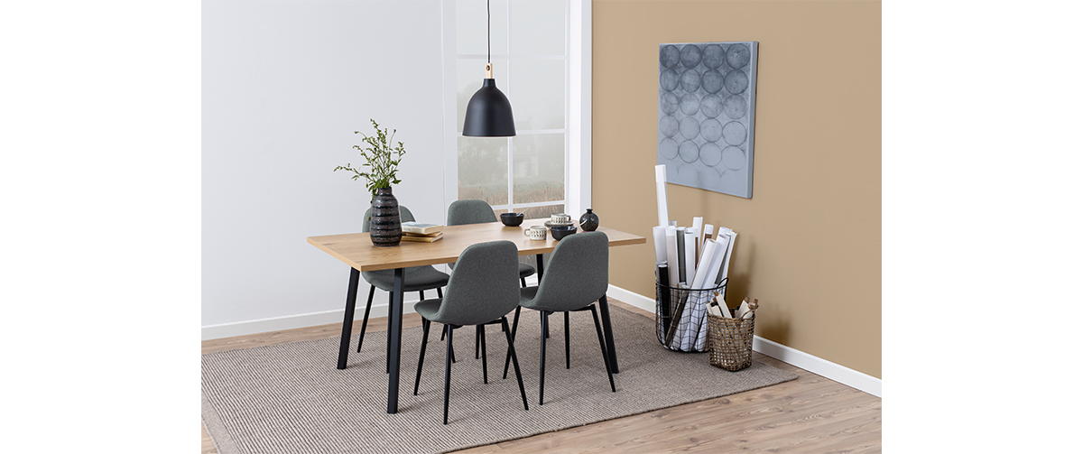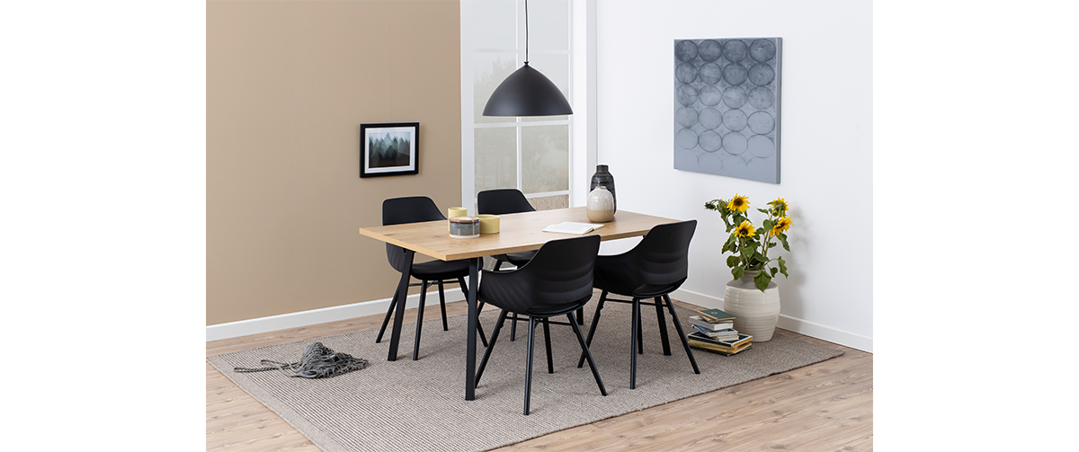 Με λιτό και σύγχρονο design, το ορθογώνιο τραπέζι τραπεζαρίας Cenny αποτελεί ιδανικό σημείο συνάντησης για οικογένεια και φίλους. Η επιφάνεια σε όψη άγριας δρυός προσδίδει ζεστασιά και φυσικό χαρακτήρα, ενώ τα ματ μαύρα μεταλλικά πόδια δημιουργούν κομψή αντίθεση. Οι καθαρές γραμμές και η διακριτική του σιλουέτα το καθιστούν μια πρακτική και διαχρονική επιλογή για κάθε σύγχρονη τραπεζαρία.