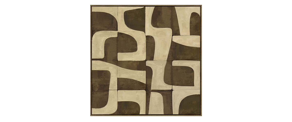Οι γήινες αποχρώσεις του καφέ και μπεζ, σε συνδυασμό με abstract καμπύλες, δημιουργούν μια αρμονική σύνθεση που αποπνέει ανεπιτήδευτο στιλ.
