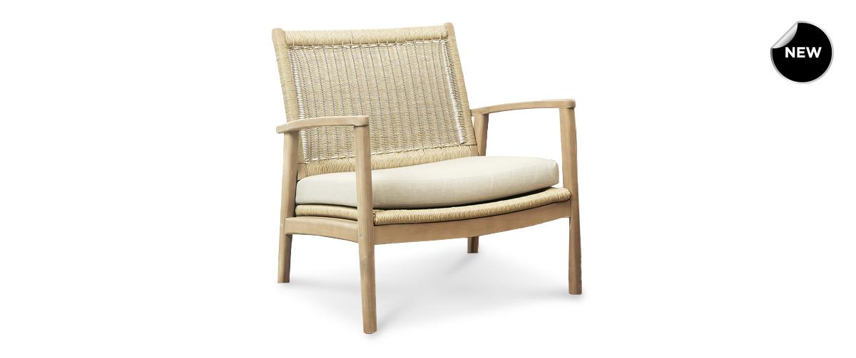 Η πολυθρόνα Salsa σε απαλή μπεζ απόχρωση, με ξύλο ακακίας και επένδυση τύπου λινό, συνδυάζει αισθητική, άνεση και λειτουργικότητα.