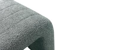 Διαθέτει σκελετό από plywood που προσφέρει σταθερότητα και αντοχή στη χρήση, ενώ το λευκό bouclé ύφασμα της επένδυσης χαρίζει υφή, απαλότητα και διακριτική πολυτέλεια.
