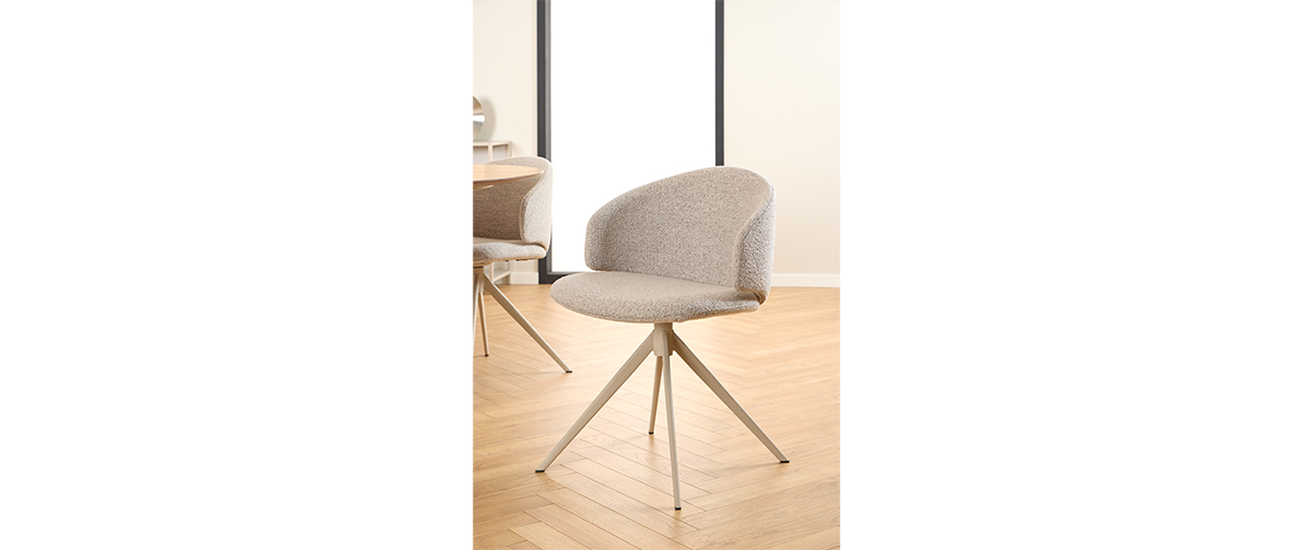 Επενδυμένο με μπεζ κάλυμμα που μοιάζει με μπουκλέ με σγουρή δομή. Διαθέτει λειτουργία περιστροφής για εύκολη μετακίνηση.
