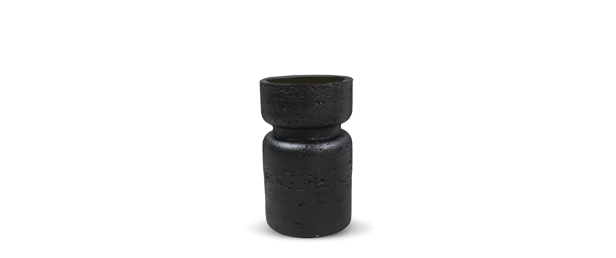 Το κηροπήγιο σε μαύρο matte φινίρισμα ξεχωρίζει με την καθαρή, κυλινδρική του φόρμα που προσδίδει στιβαρότητα και μοντέρνα αισθητική.