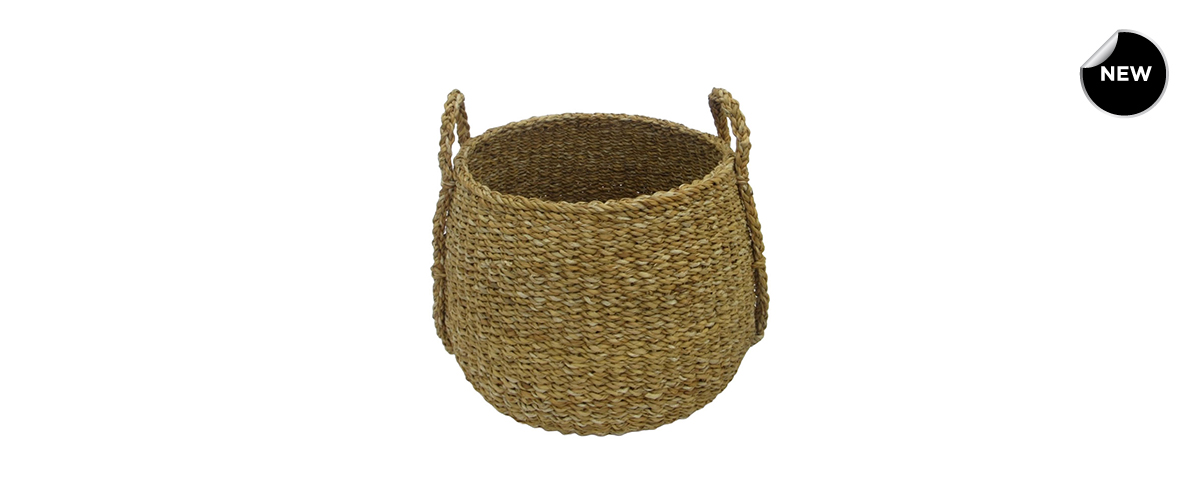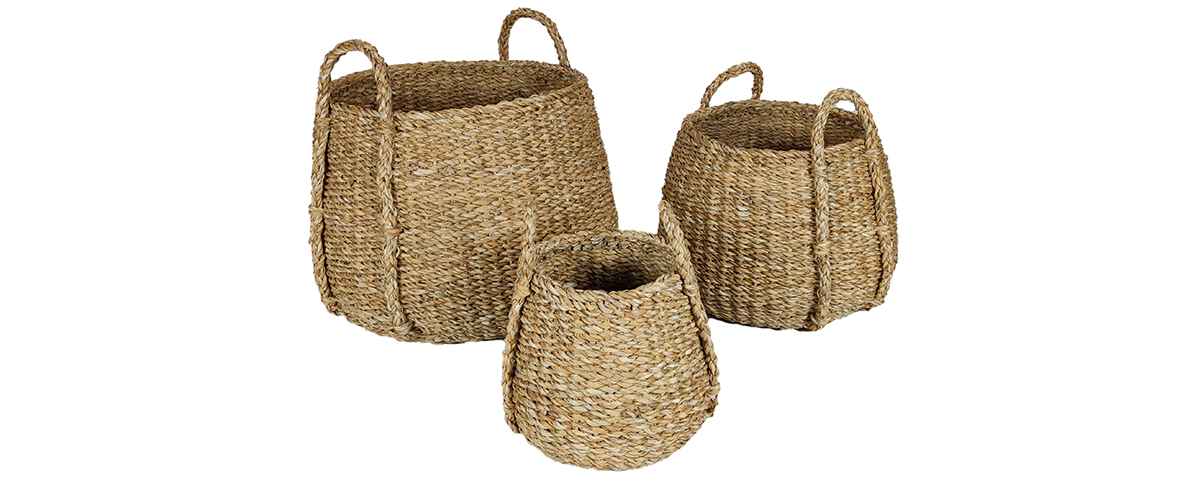 Made from Seagrass, they feature a slightly curved base and handles for easy carrying, while their design allows the baskets to nest inside each other for space-saving storage when not in use.