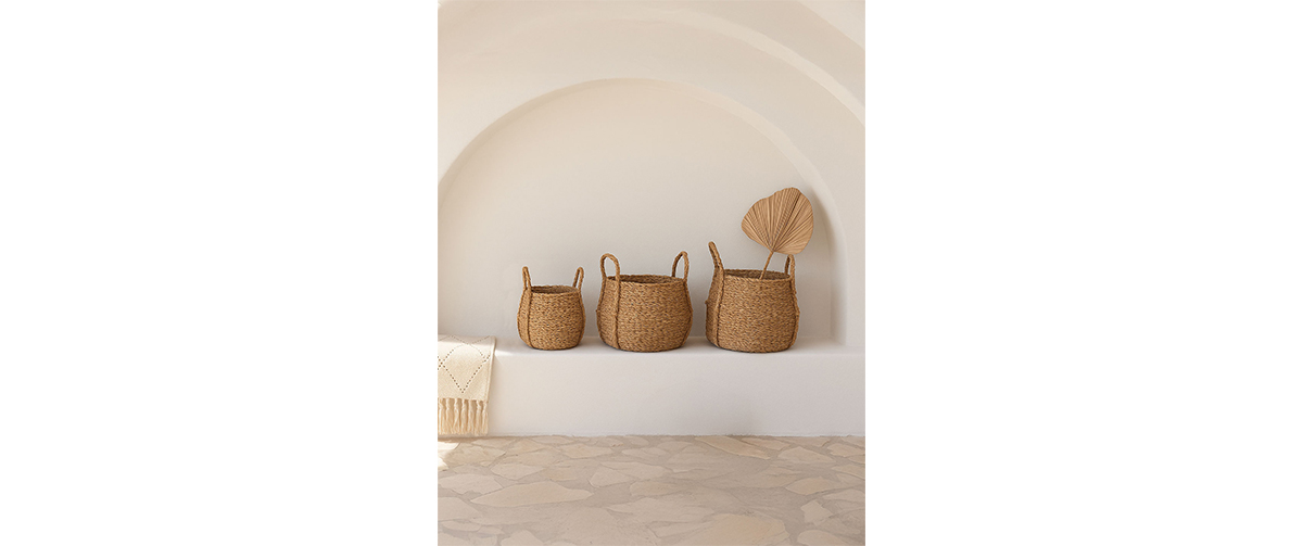 Organize and elevate your space with the Almar wicker baskets with handle, a set of three stylish and practical storage solutions.