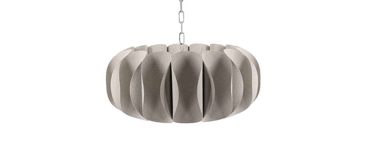 Enhance your space with the “Fulvia” metal ceiling light, featuring a unique design of curved elements seamlessly connected, evoking a sense of movement and modern geometry.
