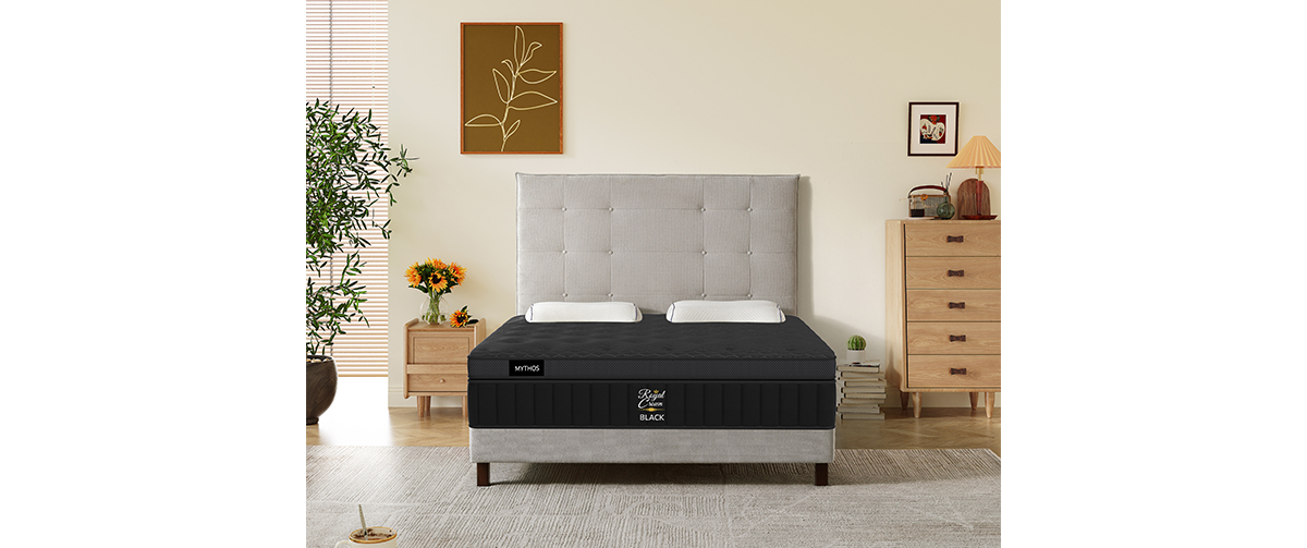 Perfect sleep is not a myth…The unique anatomic mattress Mythos makes it real! Gel Memory Foam regulates the body’s temperature ideally while the natural Latex together with the Carbon Fiber layer and the high quality knitted fabric compose the ultimate healthy, comfortable and pleasant sleeping environment. 7 zones of support combined with the Pocket + Mini Pocket springs provide the perfect support for your body while relieving it from stress. The luxurious Euro top further enhances the unique sleeping experience that Mythos mattress offers.