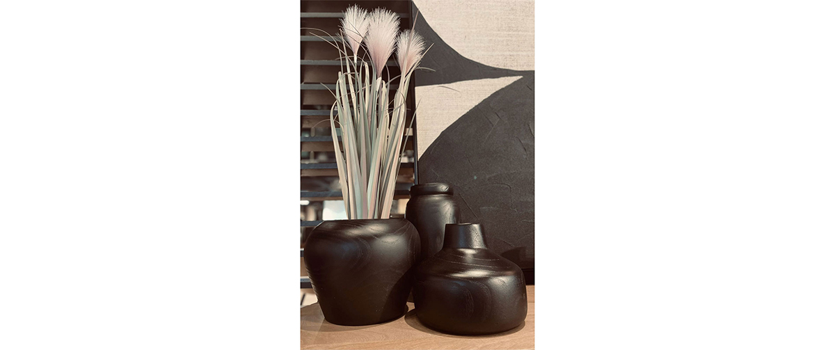 Highlight the character and intensity of your space with “Nubia,” a modern wooden vase featuring a bold, dynamic design.