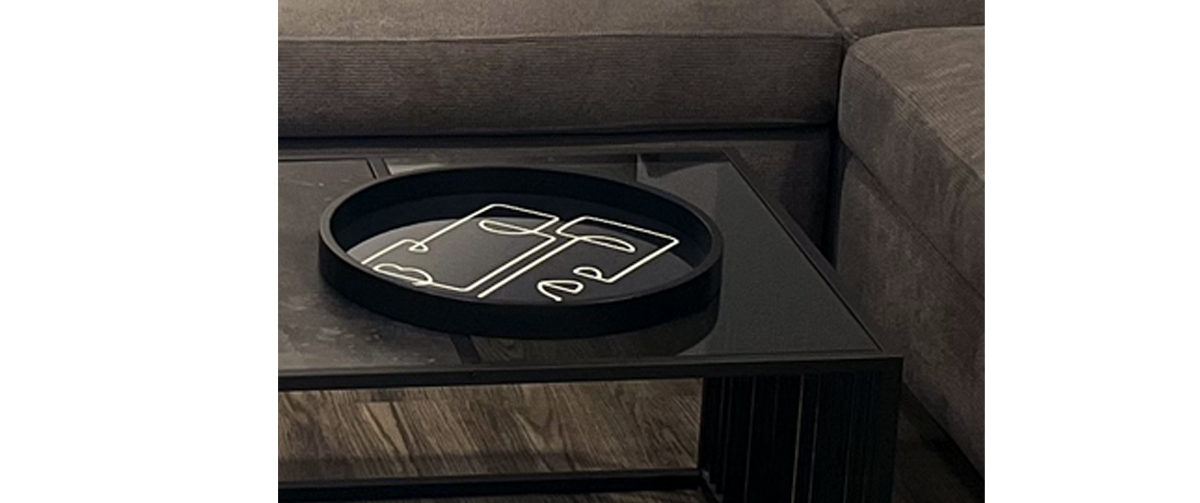 Αναδείξτε την καλλιτεχνική απλότητα και τη σύγχρονη αισθητική του χώρου σας με τον δίσκο «Face», ένα ιδιαίτερο διακοσμητικό σε μαύρο χρώμα που απεικονίζει δύο πρόσωπα μέσα από λιτές, γραμμικές φόρμες.