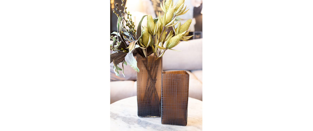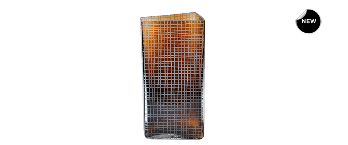 Αναδείξτε τη γεωμετρική κομψότητα και τη διακριτική υφή του χώρου σας με το γυάλινο βάζο «Gravir», που ξεχωρίζει για το ορθογώνιο σχήμα του και το σχέδιο πλέγματος από γραμμές.
