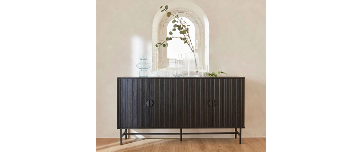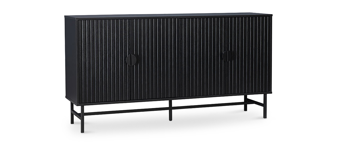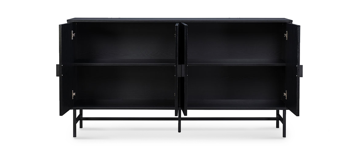 Ο μπουφές Kimono φέρνει τη μοντέρνα αισθητική στο προσκήνιο, συνδυάζοντας καθαρές γραμμές με λειτουργική σχεδίαση. Με μαύρο φινίρισμα, μεταλλικά πόδια και επιφάνειες από μελαμίνη υψηλής ποιότητας, αποτελεί ένα κομψό και πρακτικό έπιπλο αποθήκευσης για το σαλόνι, την τραπεζαρία ή ακόμη και έναν μοντέρνο επαγγελματικό χώρο.