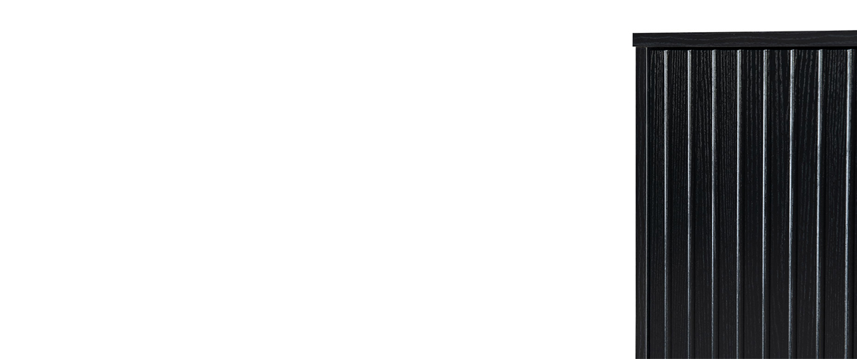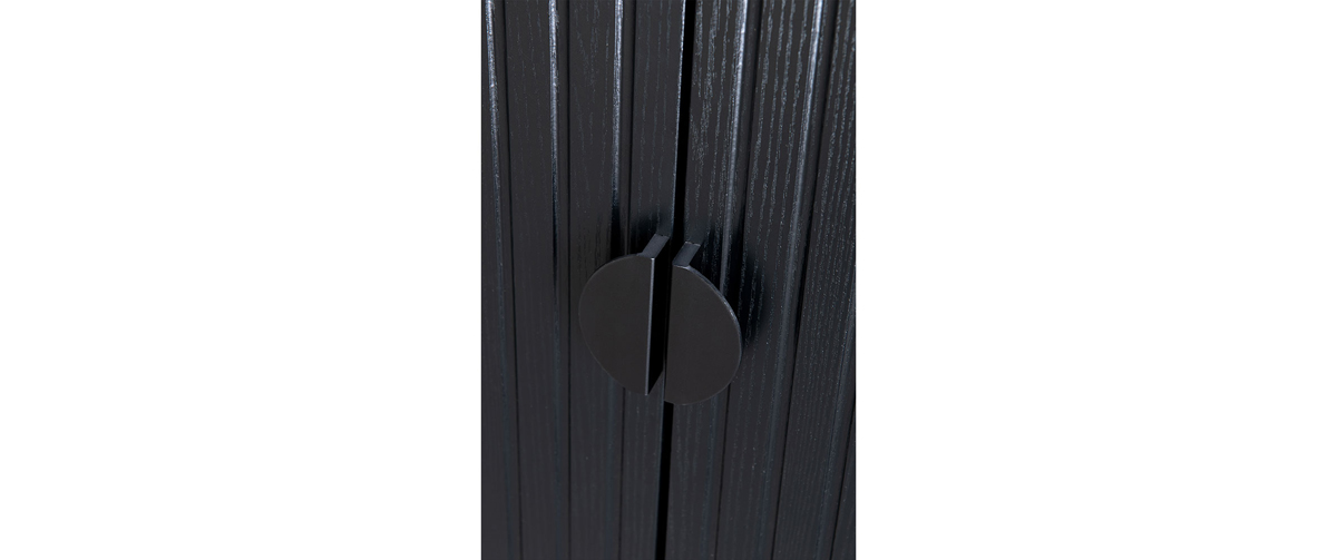 Η κάθετη ανάγλυφη υφή στις προσόψεις των πορτών και των συρταριών προσδίδει έναν ιδιαίτερο χαρακτήρα, ενώ οι μεταλλικές λαβές εναρμονίζονται με τον υπόλοιπο σχεδιασμό, αναδεικνύοντας τη μινιμαλιστική του ταυτότητα.
