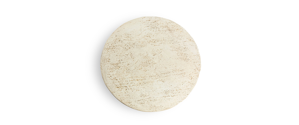Η επιφάνεια σε απαλό μπεζ χρώμα φέρνει ζεστασιά και φως στον χώρο, ενώ ο λιτός, στρογγυλός σχεδιασμός του ενσωματώνεται αρμονικά σε κάθε σαλόνι, συνδυάζοντας μοντέρνο στυλ και διακριτική κομψότητα.
