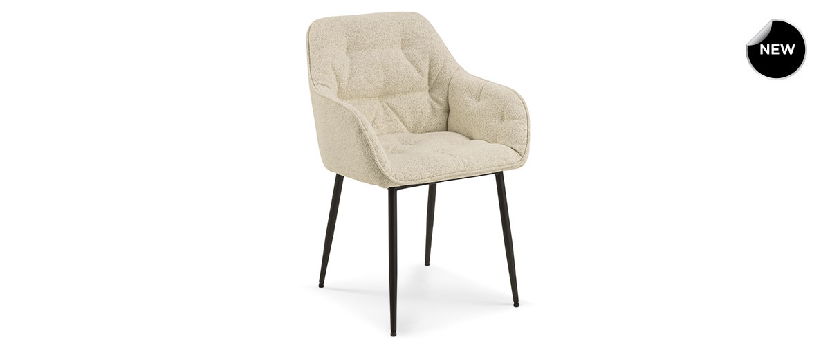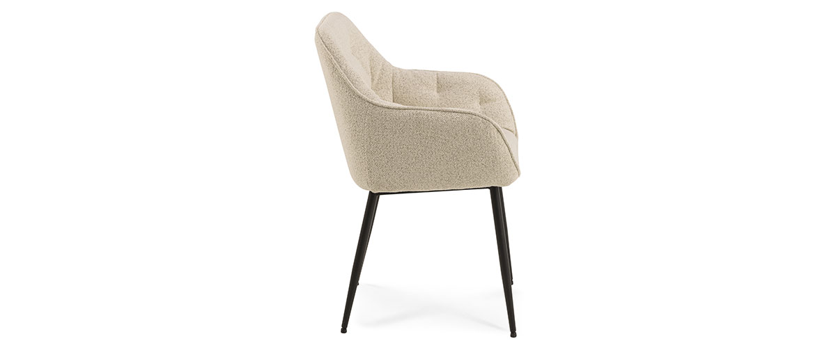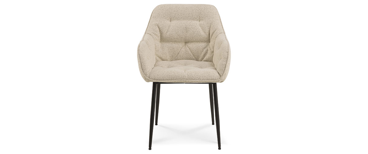 είναι μια καρέκλα μοντέρνου design, επενδεδυμένη με ύφασμα και με μεταλλικά πόδια σε μαύρη απόχρωση, που συνδυάζεται εύκολα με τραπέζια τραπεζαρίας διαφορετικού ύφους.