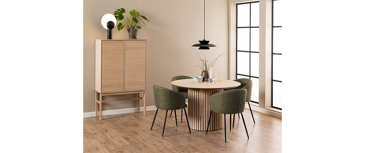 Επενδυμένη με εξαιρετικό ύφασμα και δίχρωμο εφέ, προσθέτει οπτικό ενδιαφέρον και εναρμονίζεται ιδανικά με απαλά, σύγχρονα interiors.