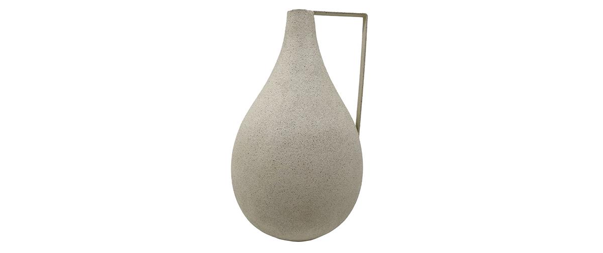Αναδείξτε τον χώρο σας με το ANFORA, ένα κομψό βάζο από beige polyresin με τριγωνικό χερούλι που προσθέτει διακριτική αρχιτεκτονική λεπτομέρεια.