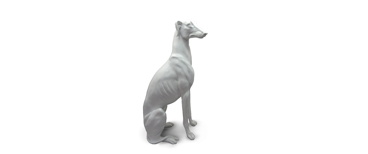 Ο διακοσμητικός σκύλος σε λευκό glossy φινίρισμα ξεχωρίζει για τις σχολαστικές λεπτομέρειες που αναδεικνύουν την κομψή του στάση.