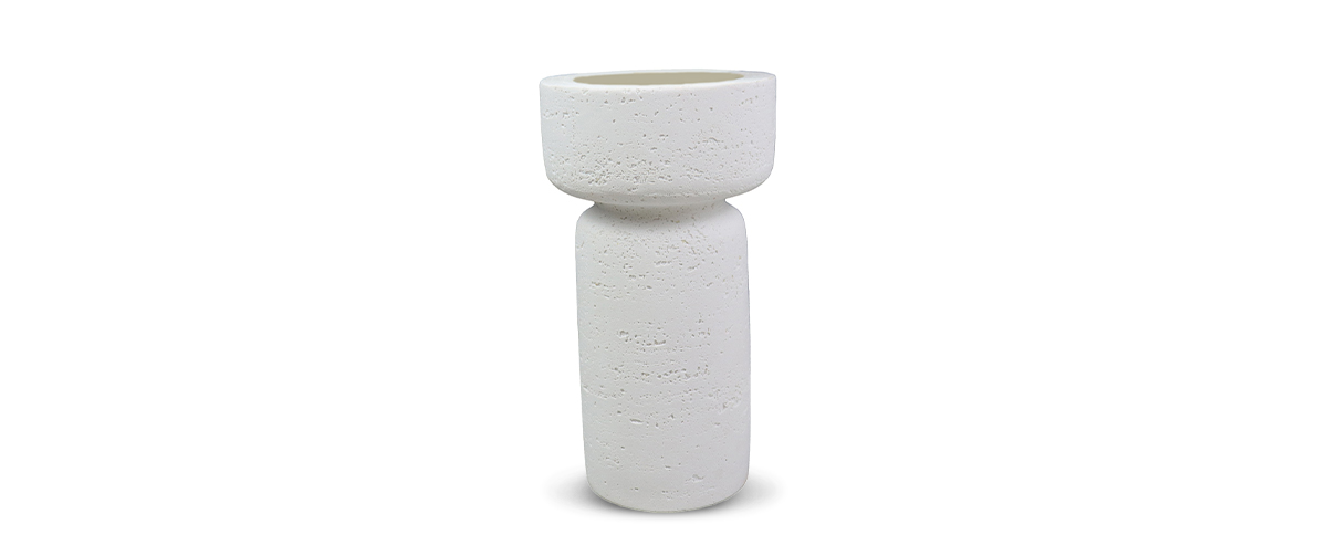 Το κηροπήγιο σε λευκό polyresin ξεχωρίζει με τη λεία επιφάνεια και τη σύγχρονη, κυλινδρική γραμμή του, προσφέροντας διακριτική φινέτσα και αισθητική ισορροπία.