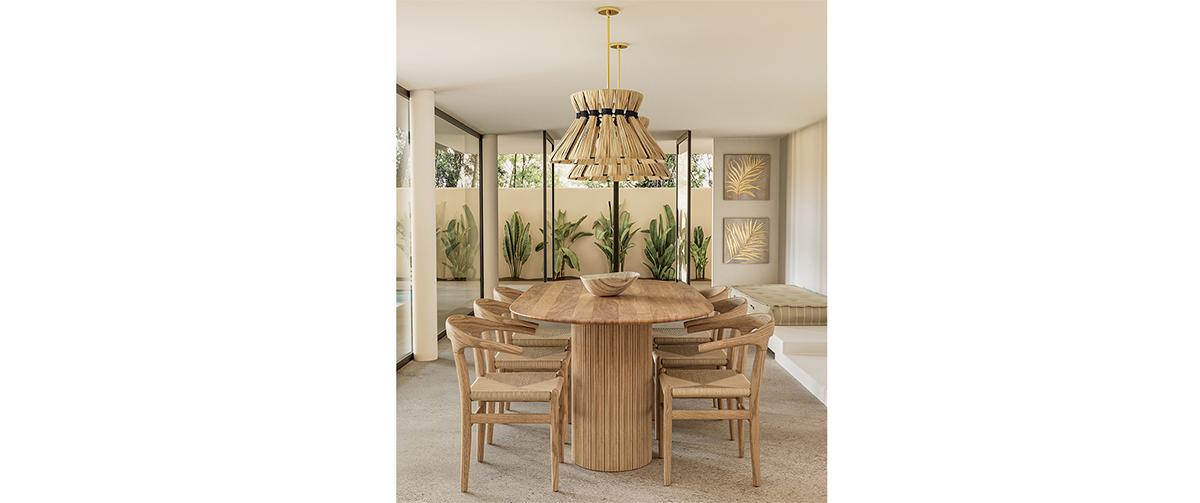 Η επιφάνεια και ο σκελετός από φυσικό ξύλο mango προσφέρουν μια relaxed yet refined ατμόσφαιρα, ιδανική για τραπεζαρίες, καθιστικά ή χώρους συνάθροισης.