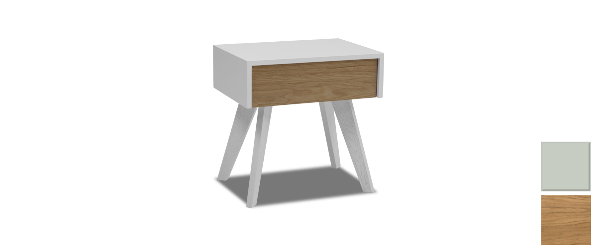 Το κομοδίνο SANTO είναι με λακαριστές επιφάνειες και πόδια, καθώς και με μετόπη από φυσικό ξύλο καπλαμά.  Τα συρτάρια έχουν αναβαθμισμένους οδηγούς με φρένο. Συνδυάζεται με την κονσόλα Santo.