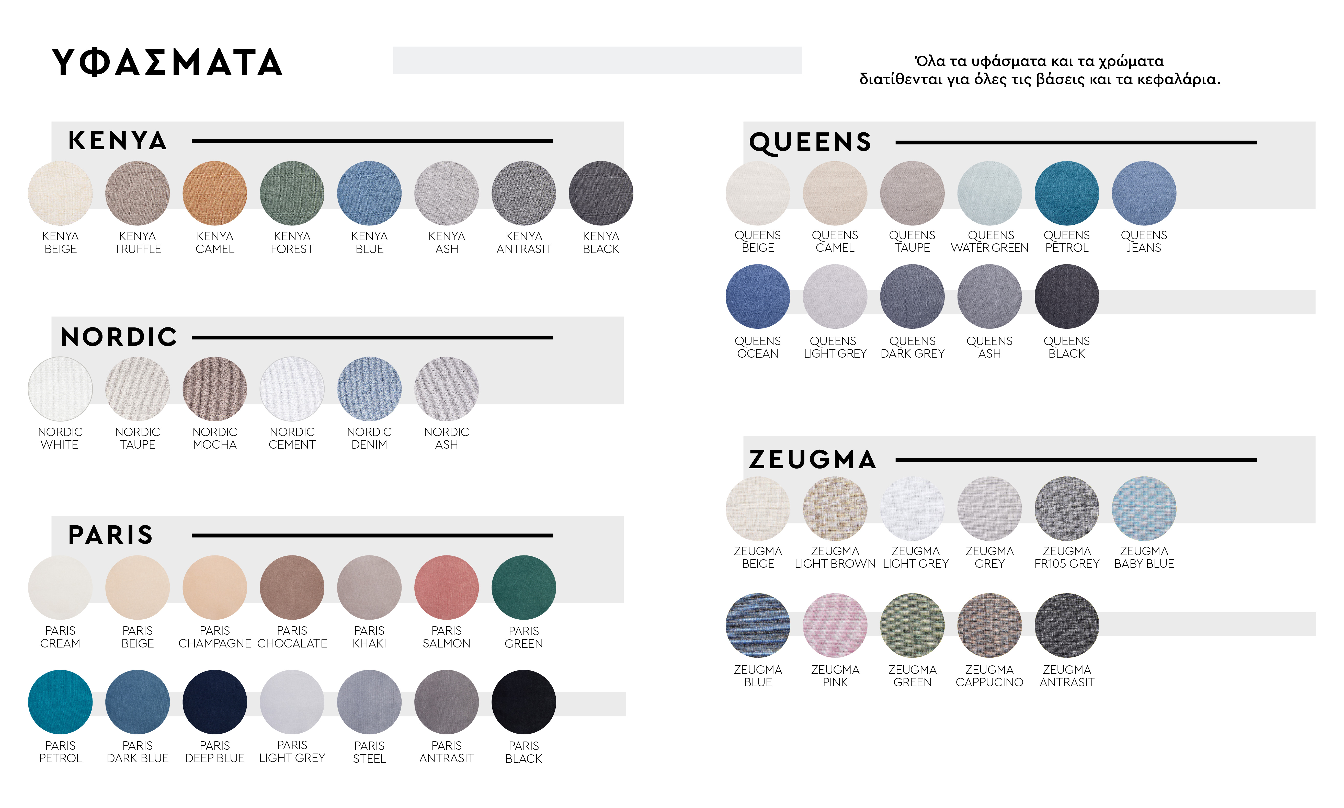 Μπορείτε να δείτε όλα τα διαθέσιμα υφάσματα και χρώματα ⇒ εδώ!