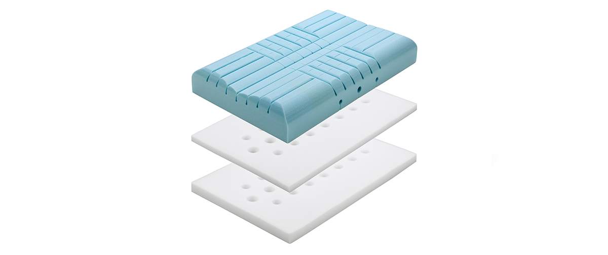 Είναι κατασκευασμένο από Memory Foam (αφρό μνήμης) τελευταίας τεχνολογίας, ιδιαίτερα ελαστικό ενώ περιλαμβάνει και τη μοναδική σχεδίαση στρογγυλών οπών. Διαστάσεων M:60 x Π:38cm. Διαθέτει 3 στρώσεις αφρού διαφορετικού ύψους (9cm, 3cm & 2cm) για να καλύπτει τις διαφορετικές ανάγκες και να προσαρμόζεται στις συνήθειες του κάθε χρήστη.