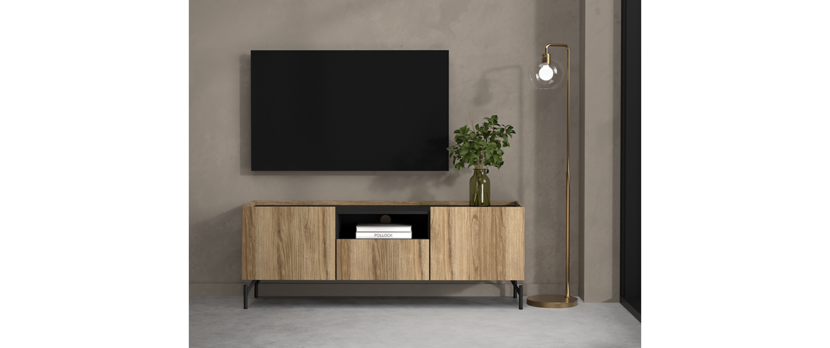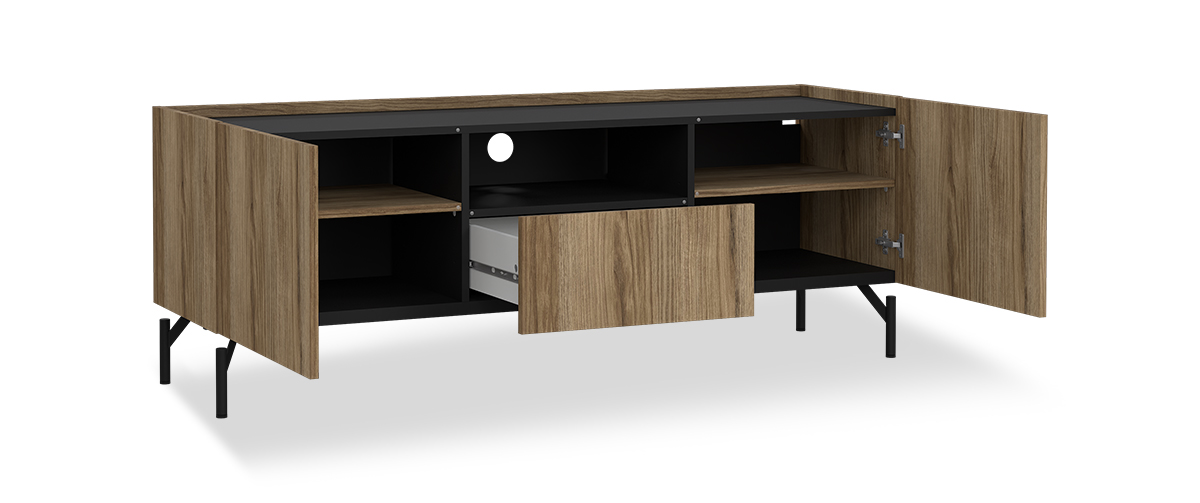 The Bergen TV Unit is the ideal entertainment storage solution. With two compartments behind doors and a drawer, it offers ample space for your belongings.
