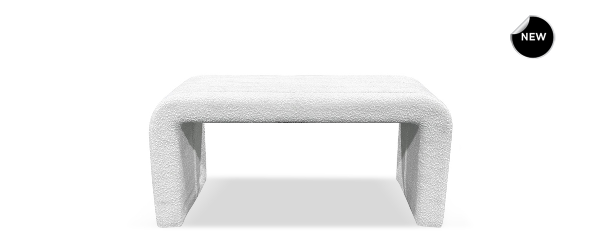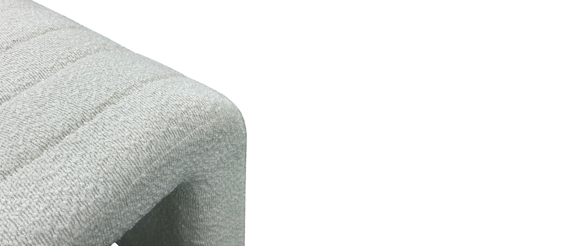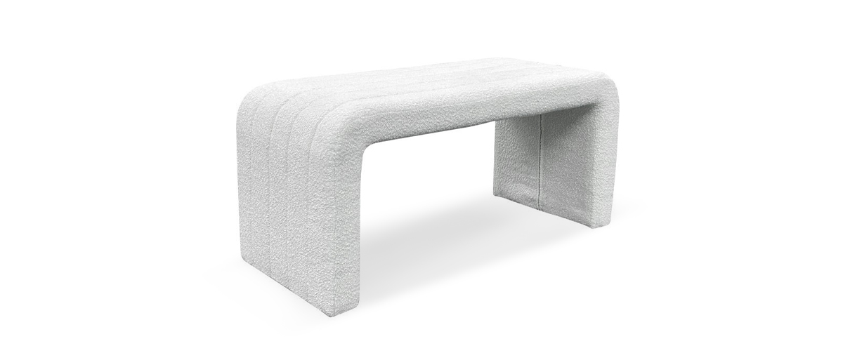 Crafted with a plywood frame for durability and strength, the bench is upholstered in soft white bouclé fabric, adding texture and understated luxury.