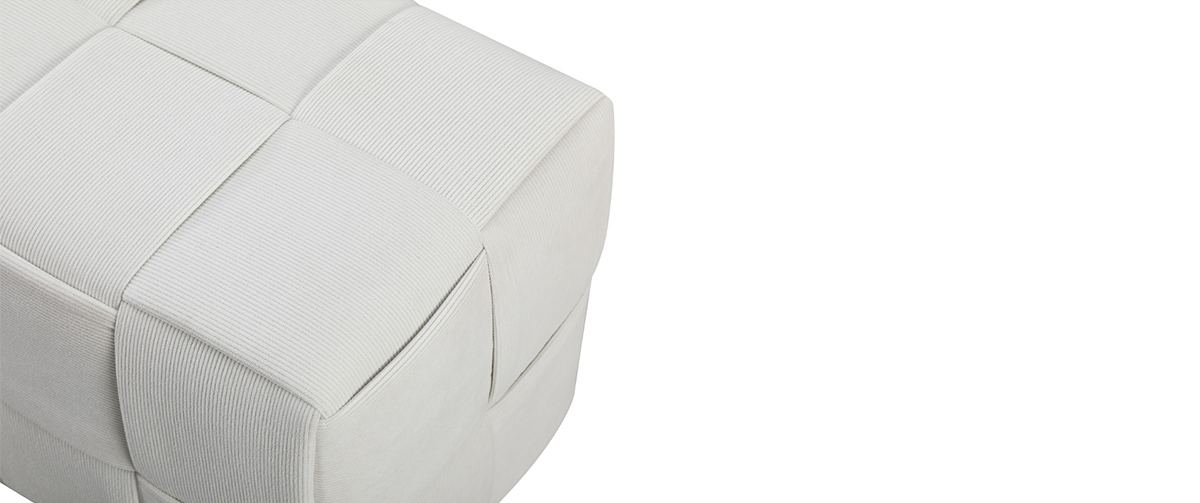 Upholstered in soft white corduroy fabric, it offers both visual warmth and everyday comfort. Its cylindrical shape and clean design add a contemporary touch, while the particleboard frame ensures structural stability.