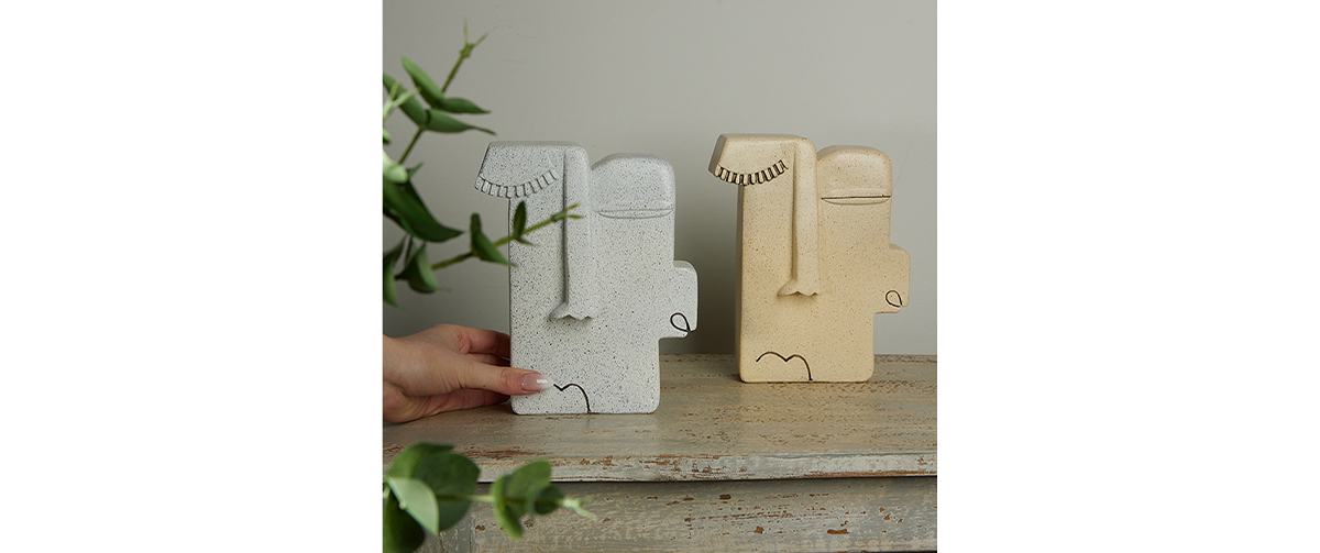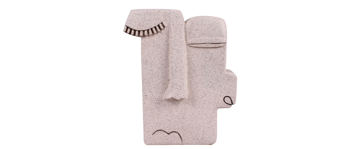 Highlight the modern aesthetic and contemplative calm of your space with the decorative figure “Kuvaus 3”, a sculptural depiction of a face that radiates introspection, subtle expression, and quiet strength.