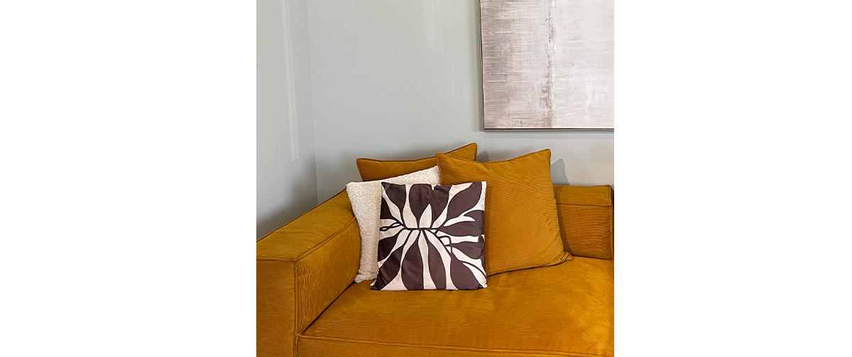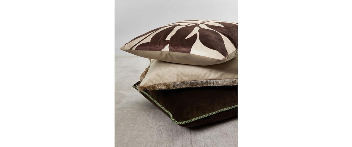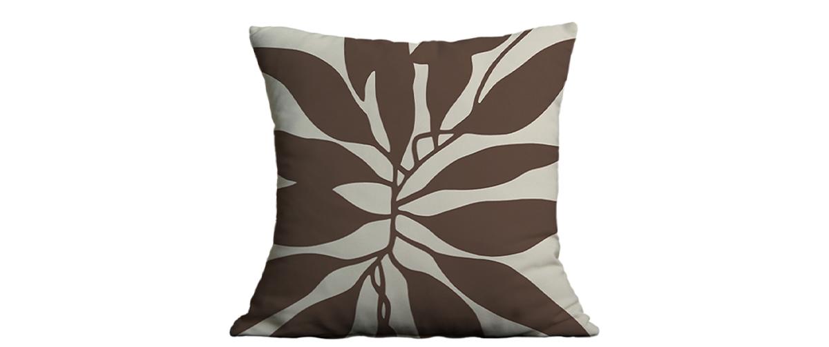 Bring out the natural charm and warm tones of your space with the “Liana” decorative cushion, a stylish piece in beige and brown shades featuring a large leaf motif.