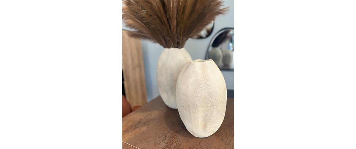 Celebrate the harmony between natural aesthetics and modern functionality with the “Thetis” vase, an oval, embossed piece made from MGO that stands out for its sculptural lines and earthy texture.