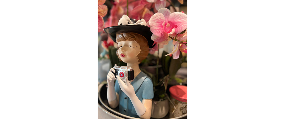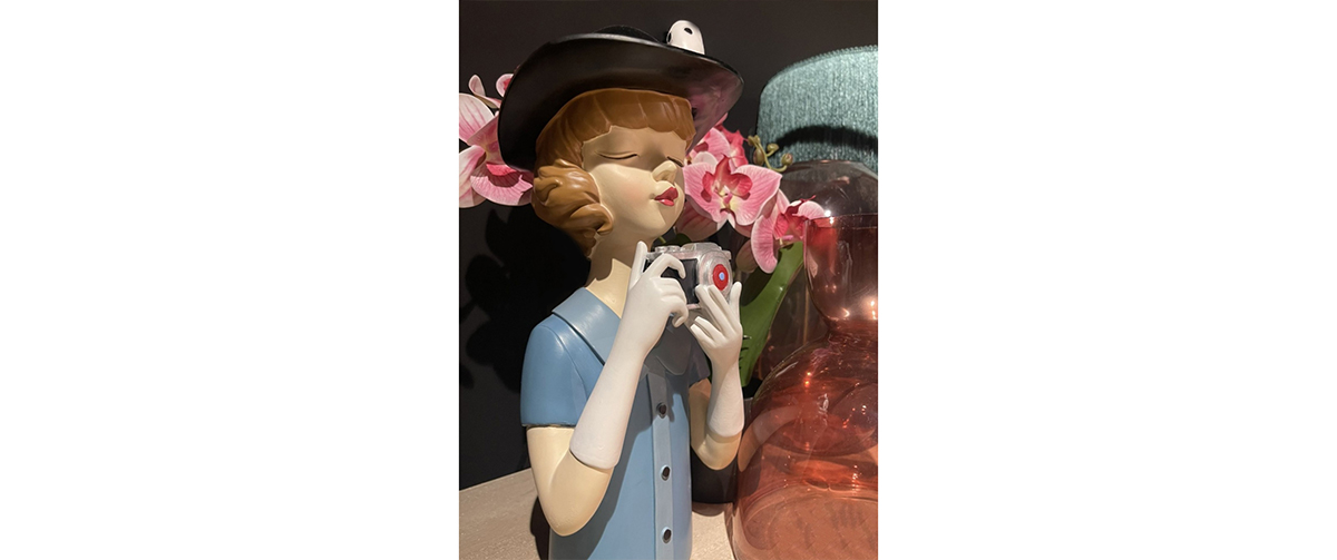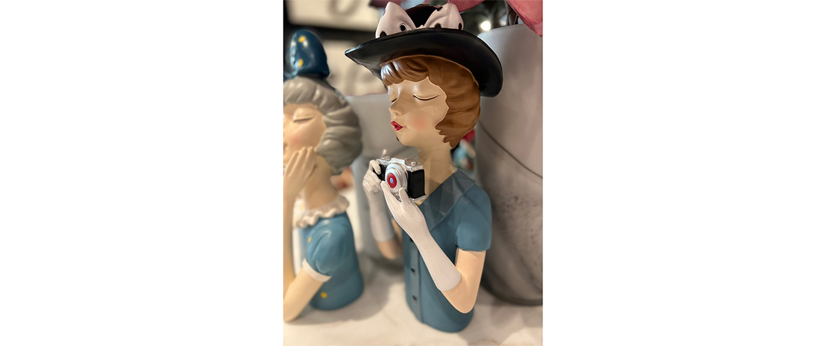 Highlight the vibrancy, creativity, and carefree spirit of your space with the decorative figure “Travel Girl 6,” a pop art depiction of a girl holding a camera, full of style and personality.