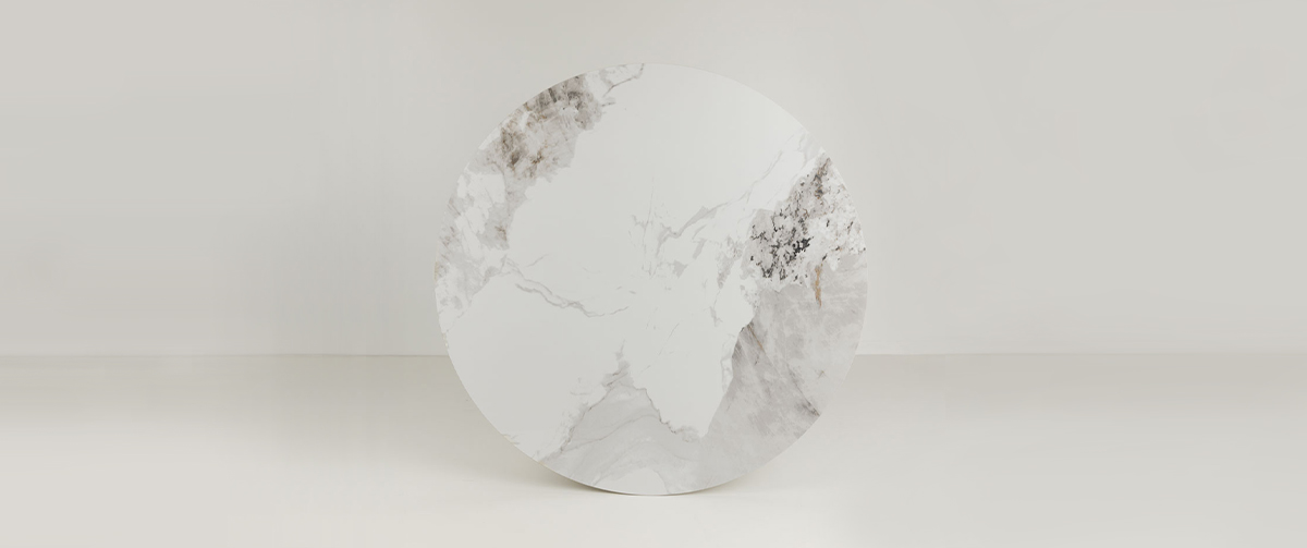 Its 11mm ceramic top with a marble-effect finish rests on a sturdy 25mm MDF base, offering a luxurious texture and everyday resistance to heat, wear, and stains.