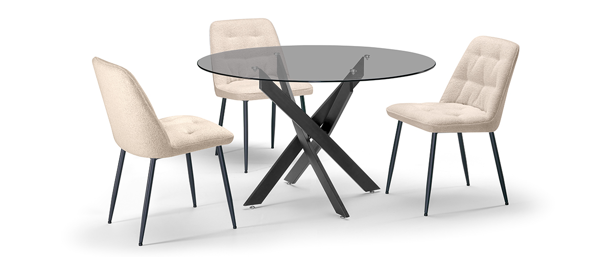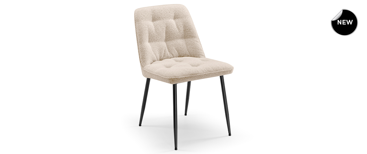 Brook dining chair will elevate your dining room with its timeless silhouette. The tufting adds texture and structure to the seat, which is supported by angled legs with a rough powder coated finish.