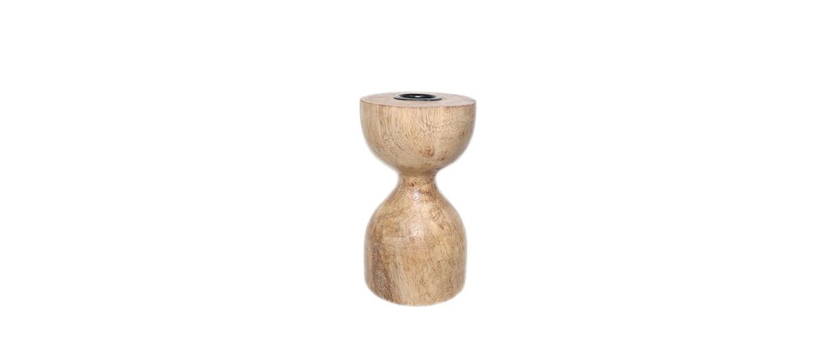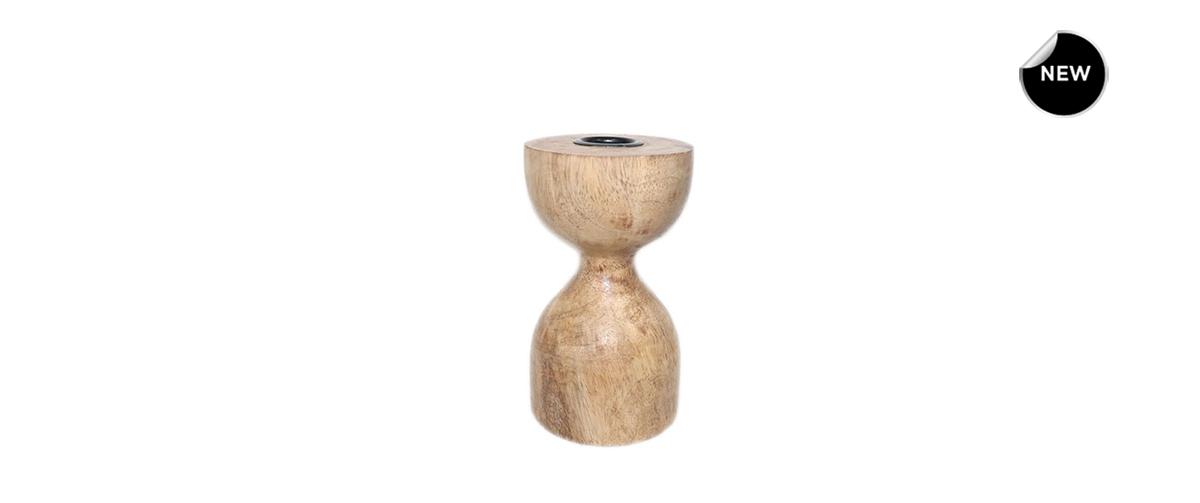 Highlight the natural elegance and subtle harmony of your space with the “Cintura” candle holder, a wooden décor piece with a curved design and natural wood finish.