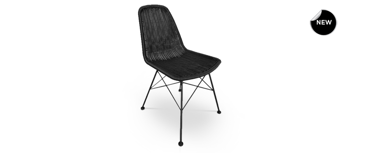 The Denmark dining chair exudes understated elegance and modern character, combining the natural look of PE Rattan with the bold presence of a metal frame.