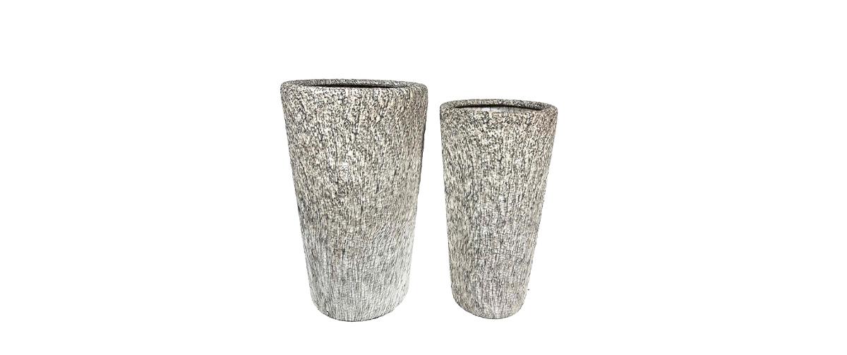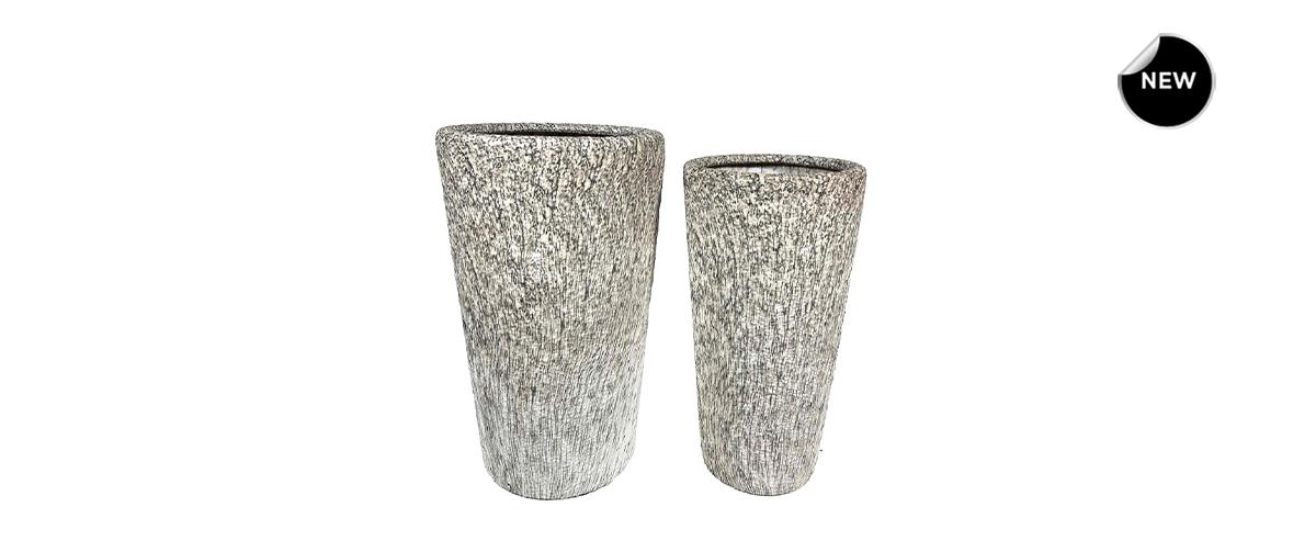 The tall Kanche planters stand out with their embossed texture reminiscent of stone surfaces, adding a natural feel and solidity to any space.