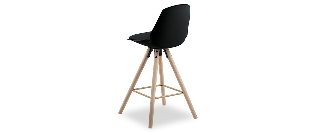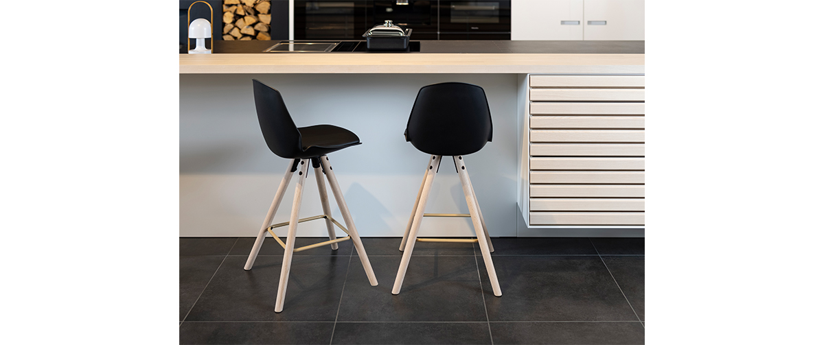 The Oslo bar stool will elevate your space with its modern Scandinavian design and oak frame. The oak and sculptural black seat complement each other perfectly. To enhance comfort, the seat features a soft cushion, higher backrest, and footrest. The high backrest and soft seat cushion provide a comfortable sitting experience, while the square base adds stability.