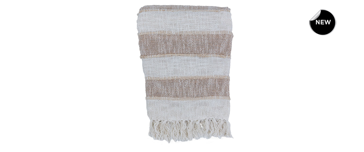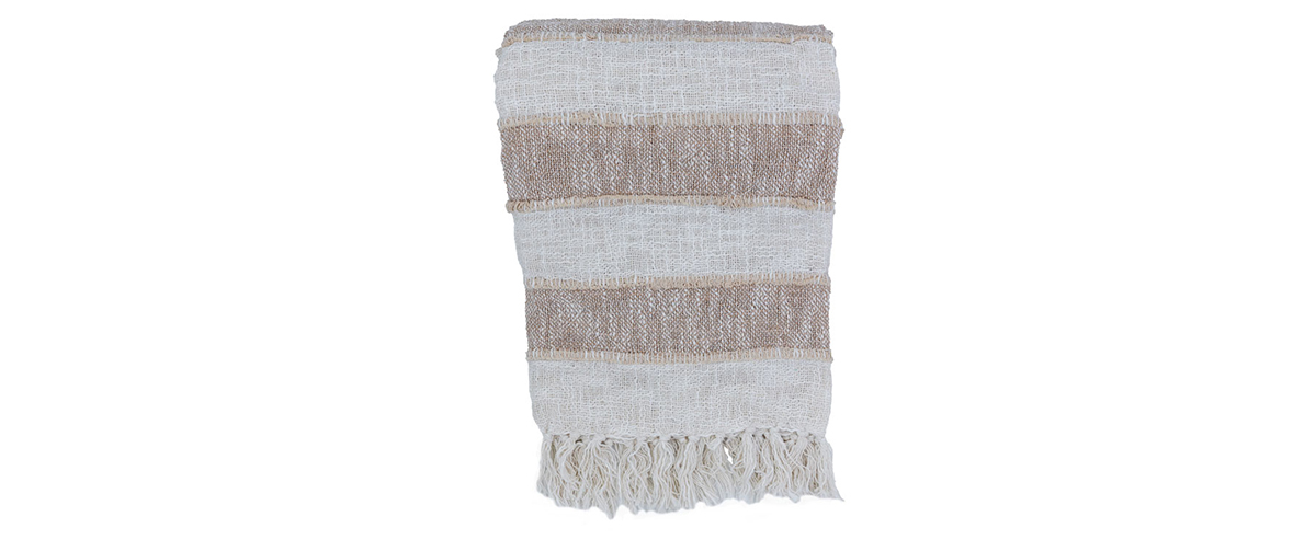 Enhance the natural elegance and soft freshness of your space with the “Sinul” throw, a striped design in white and beige tones that radiates simplicity and summery balance.