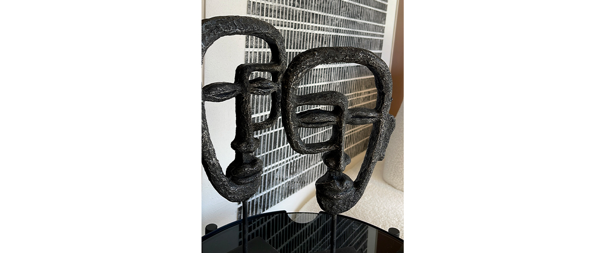 The harmonious lines forming the face radiate dynamism and elegance, making this piece ideal as a focal point on any shelf, console, or table.