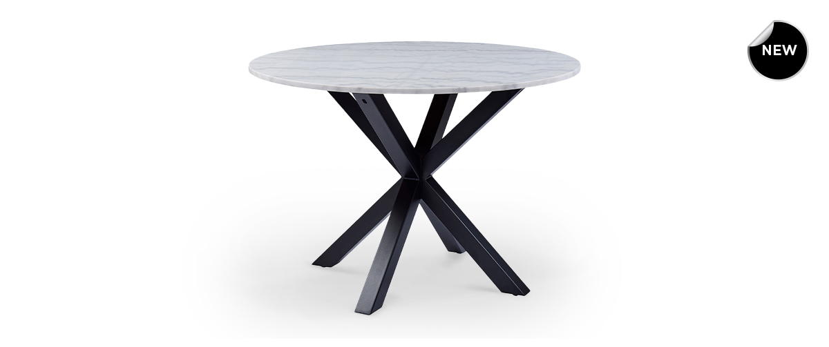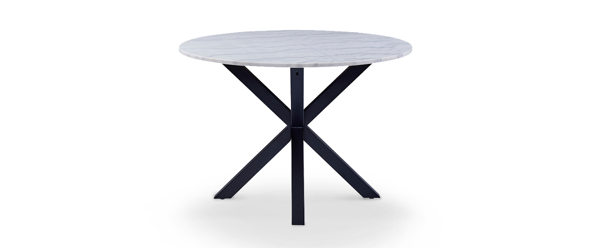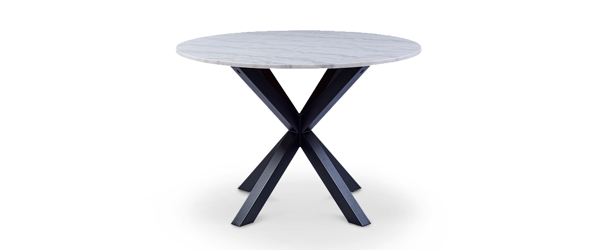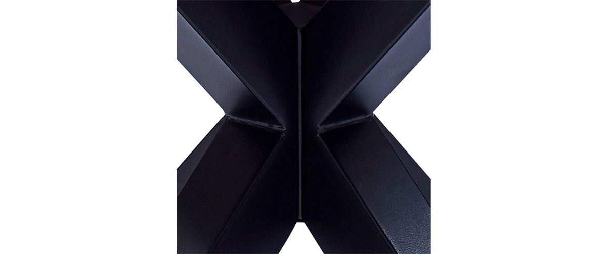 cross-shaped base made of black matte steel, in dimensions Φ110x75.5cm.
