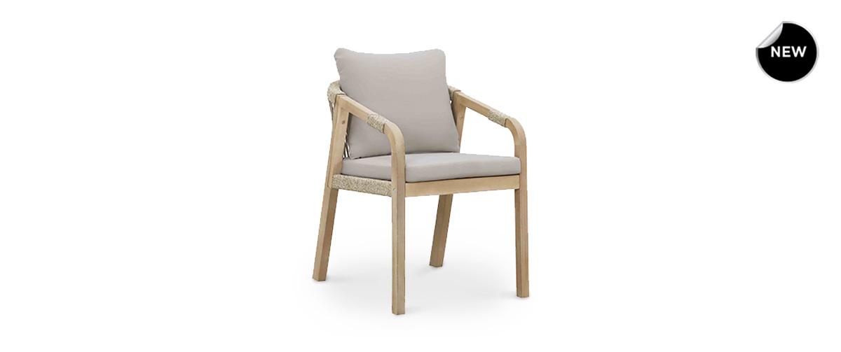 Η καρέκλα Terrazzo συνδυάζει τη φυσική αισθητική με τη διαχρονική κομψότητα, αποτελώντας μια ιδανική επιλογή για τραπεζαρίες κήπου, βεράντες ή εσωτερικούς χώρους. Το αναπαυτικό μαξιλάρι με λινή επένδυση σε απαλή μπεζ απόχρωση προσφέρει άνεση και κομψότητα, ενώ ο σκελετός από ξύλο ακακίας σε φυσικό ανοιχτόχρωμο τόνο εξασφαλίζει ανθεκτικότητα και σταθερότητα.